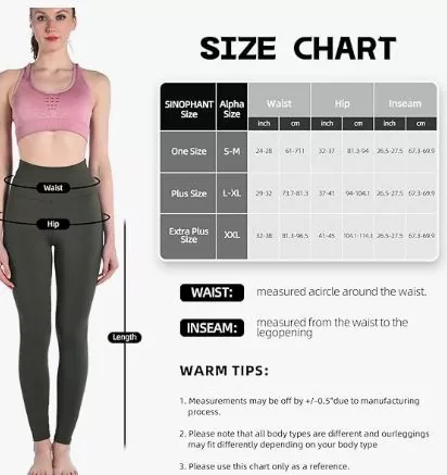 2. Teña en conta que todos os tipos de corpo son diferentes e os nosos leggings poden encaixar de forma diferente dependendo do seu tipo de malo