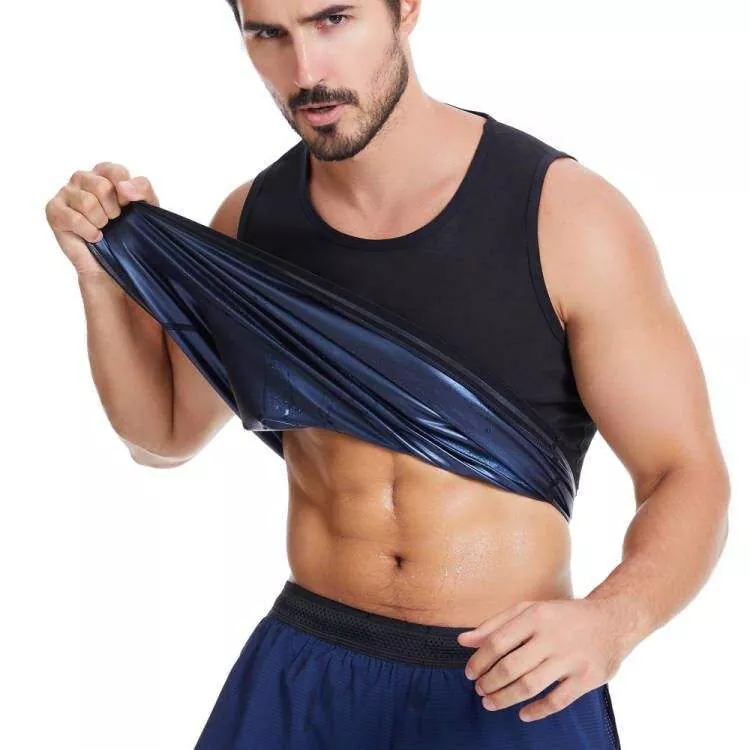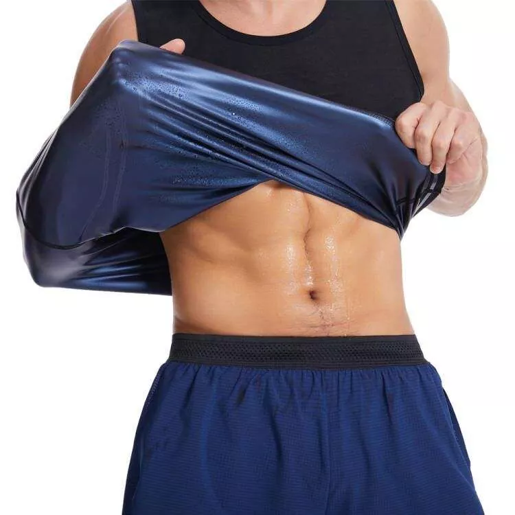 Camiseta de tirantes de sauna de adestramento Para homes máis suas, máis perdes. Queimas entre 300 e 500 calorías en 20 a 30 minutos a través do adestrador de cintura de sauna e isto equivale a 5 libras. O chaleco de suor adelgazante axuda a apertar a barriga e reafirmar o abdome.